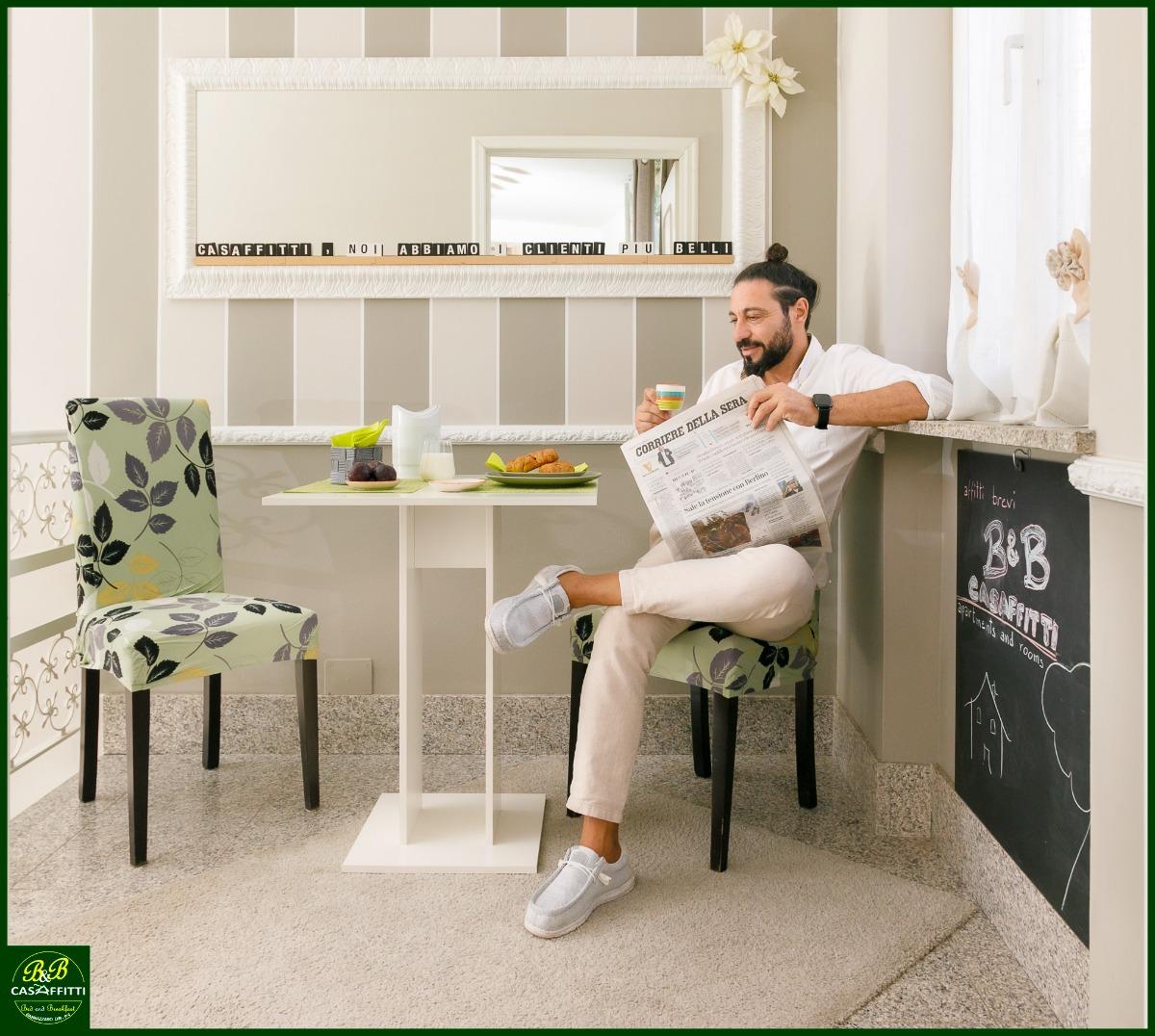 BREAKFAST on request at a cost of €.5 per person per day, to be consumed both in your room and at the tables in the Hall / Reception of our. B&B.